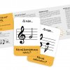 Na kartách jsou v horní části znázorněné noty v houslovém klíči a v dolní části zapsané slovně.