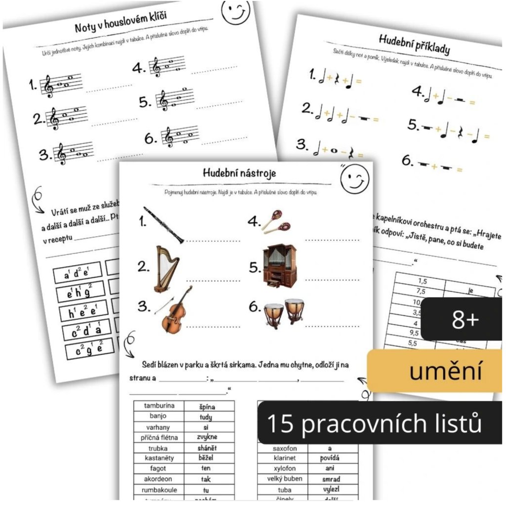 🎵 Hudební výchova bez nudy! Tento balíček přináší sadu oblíbených her a aktivit, díky kterým se žáci na druhém stupni, středních i základních uměleckých školách zábavně naučí poznávat hudební nástroje, noty, symboly i skladatele.