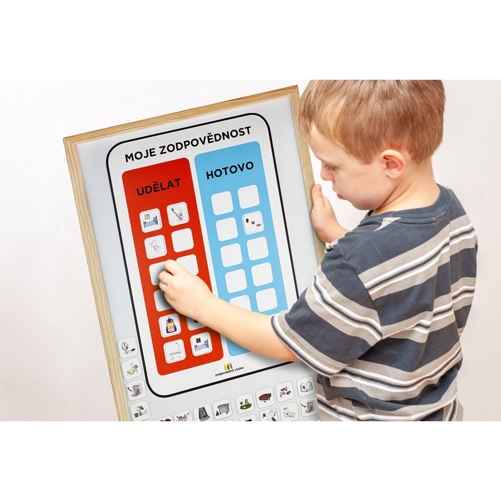 Moje zodpovědnost tvoří s TÝDENNÍM PROGRAMEM A KALENDÁŘEM trojici užitečných, každodenně využívaných pomůcek pro děti i rodiče. Děti budou mít přehled o svých povinnostech a odpadne neustálé honění a připomínání. Vždyť si to samy děti takhle rozhodly ;)