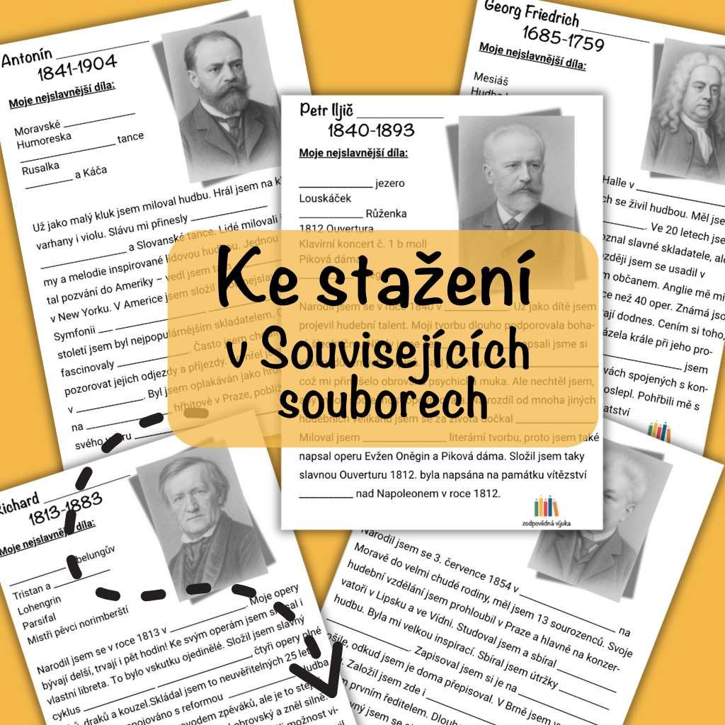 Nechte děti vytvořit „hudební pasy“ – zapíší si jméno skladatele, období a jednu zajímavost, kterou si zapamatovaly.