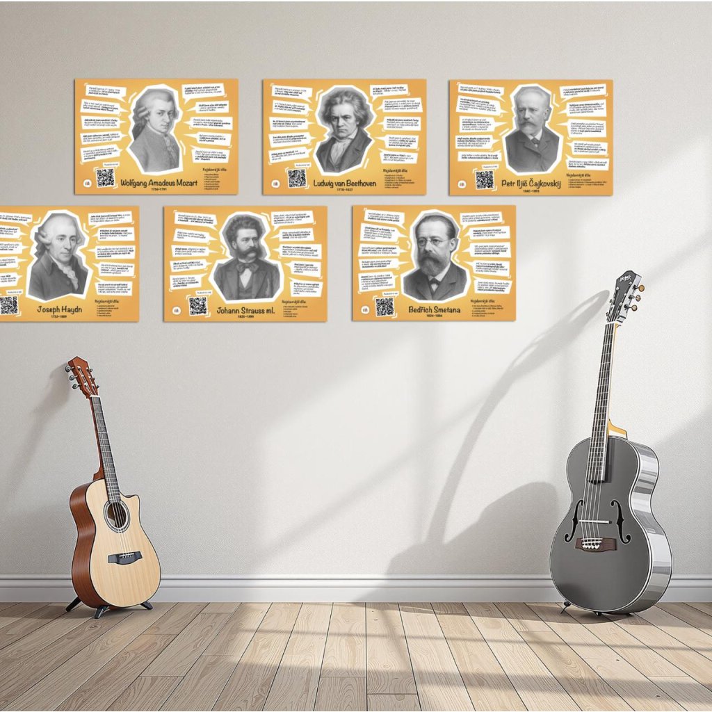 ✅ Ideální jako výzdoba hudební výchovy, chodby nebo knihovny